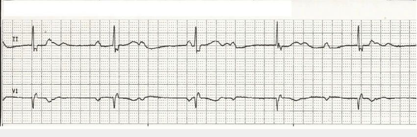 P wave: Inverted before QRS, Absent, Inverted After QRS
