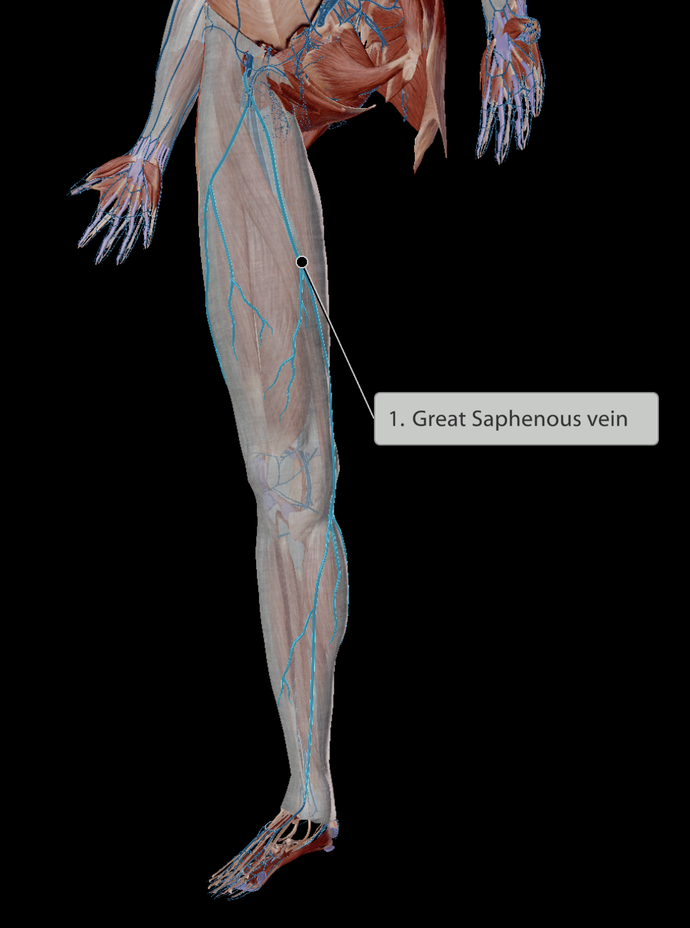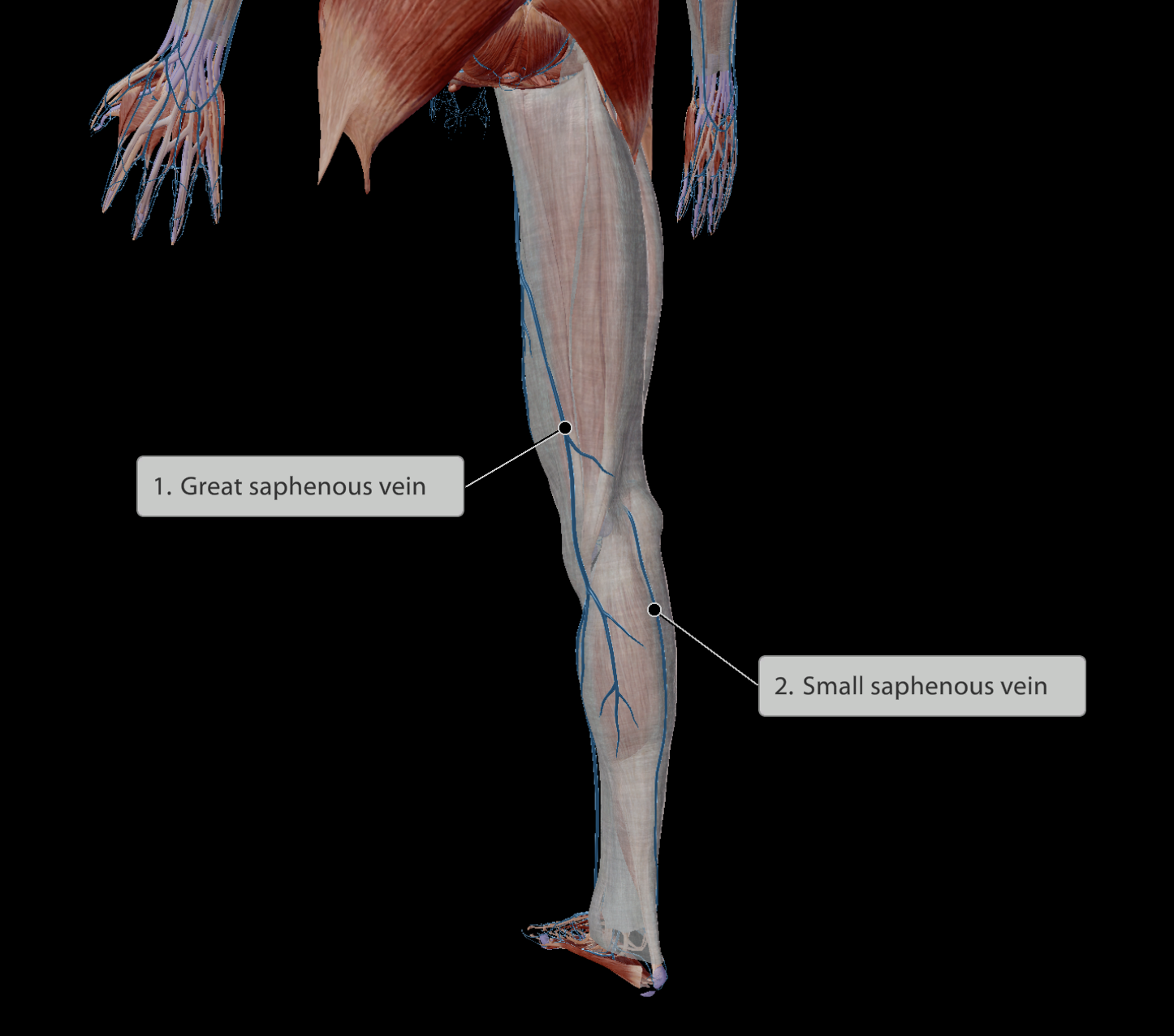 Small saphenous vein - Begins lateral to foot, travelling posteriorly up to the knee