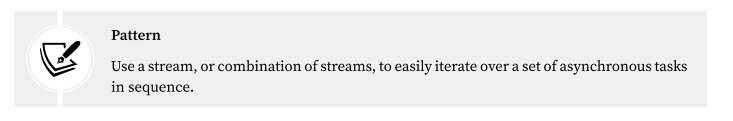 Why it's a "Pattern": Instead of using a loop to manage the order of operations, you use the stream's internal buffer and callback mechanism to force tasks to line up single-file. The stream itself becomes the "queue" manager.