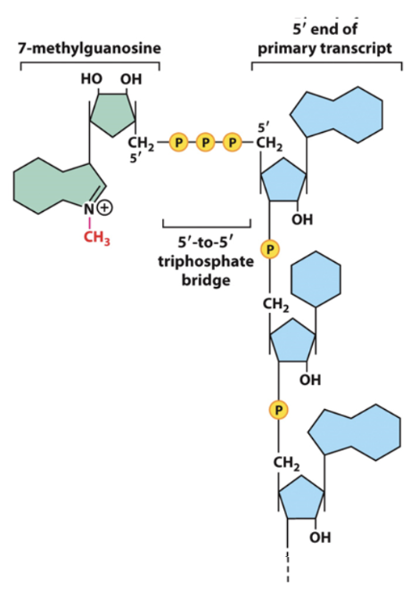 Guanyl transferase adds a GMP in a reverse linkage (5' to 5')