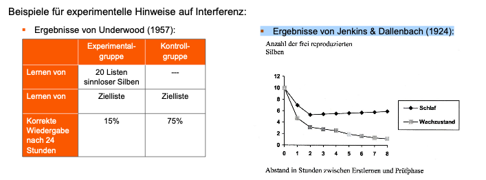 Ergebnisse von Jenkins & Dallenbach (1924):