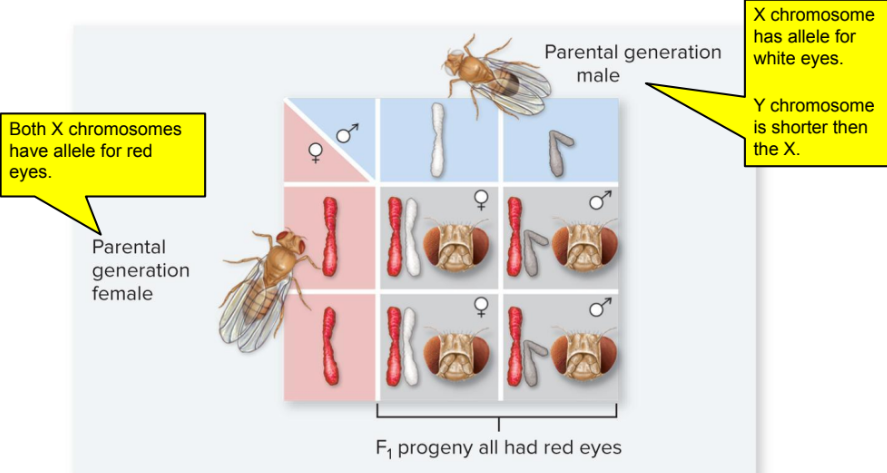 The eye color Gene resides on the X chromosome,