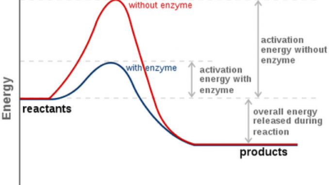 Enzymes lower the energy needed to start a reaction, but they don’t change the total energy released or required
