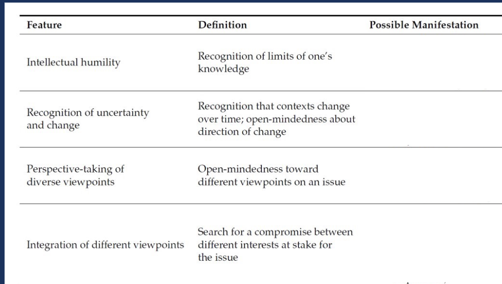 intellectual humility, recognition of uncertanty, perspective-taking, and integration of different viewpoints