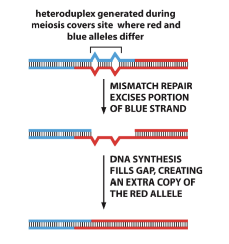 • This can lead to over-representation of a given allele in the gamete population, but does not always because the reciprocal heteroduplex may be