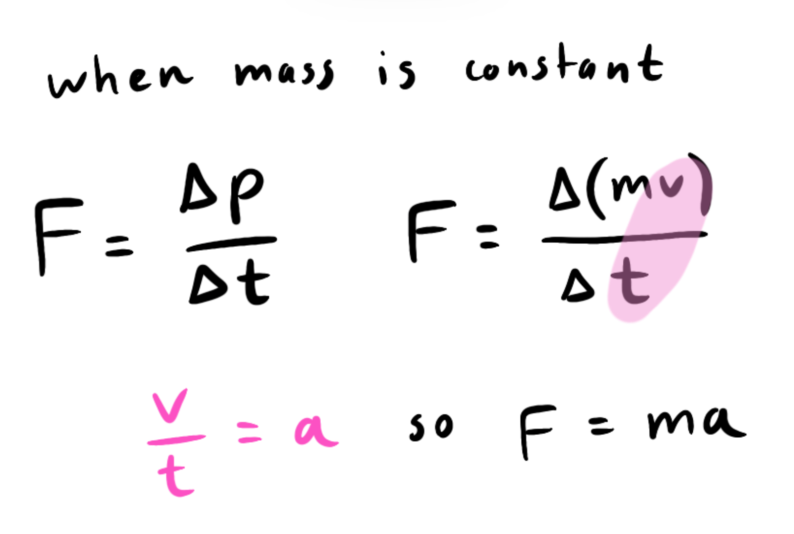 When does f = ma occur?