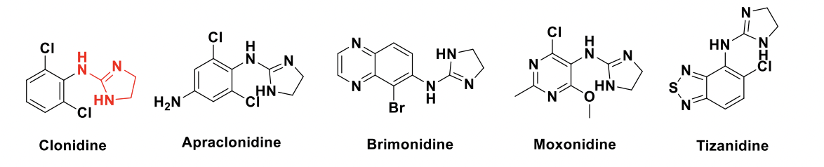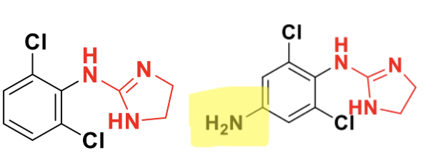 2-aminoimidazoline: Phenyl needs one ortho Chlorine or Methy,l but the Imidazoline Ring not required