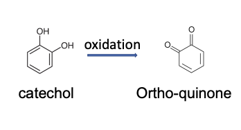 Bases and lights cause it to oxidize, leading to an ortho-quinone, which then can react with your DNA=bad.