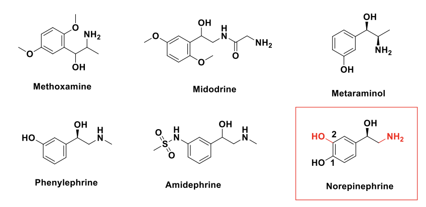 Class: Alpha 1 agonists with the phenylethanolamine backbone.