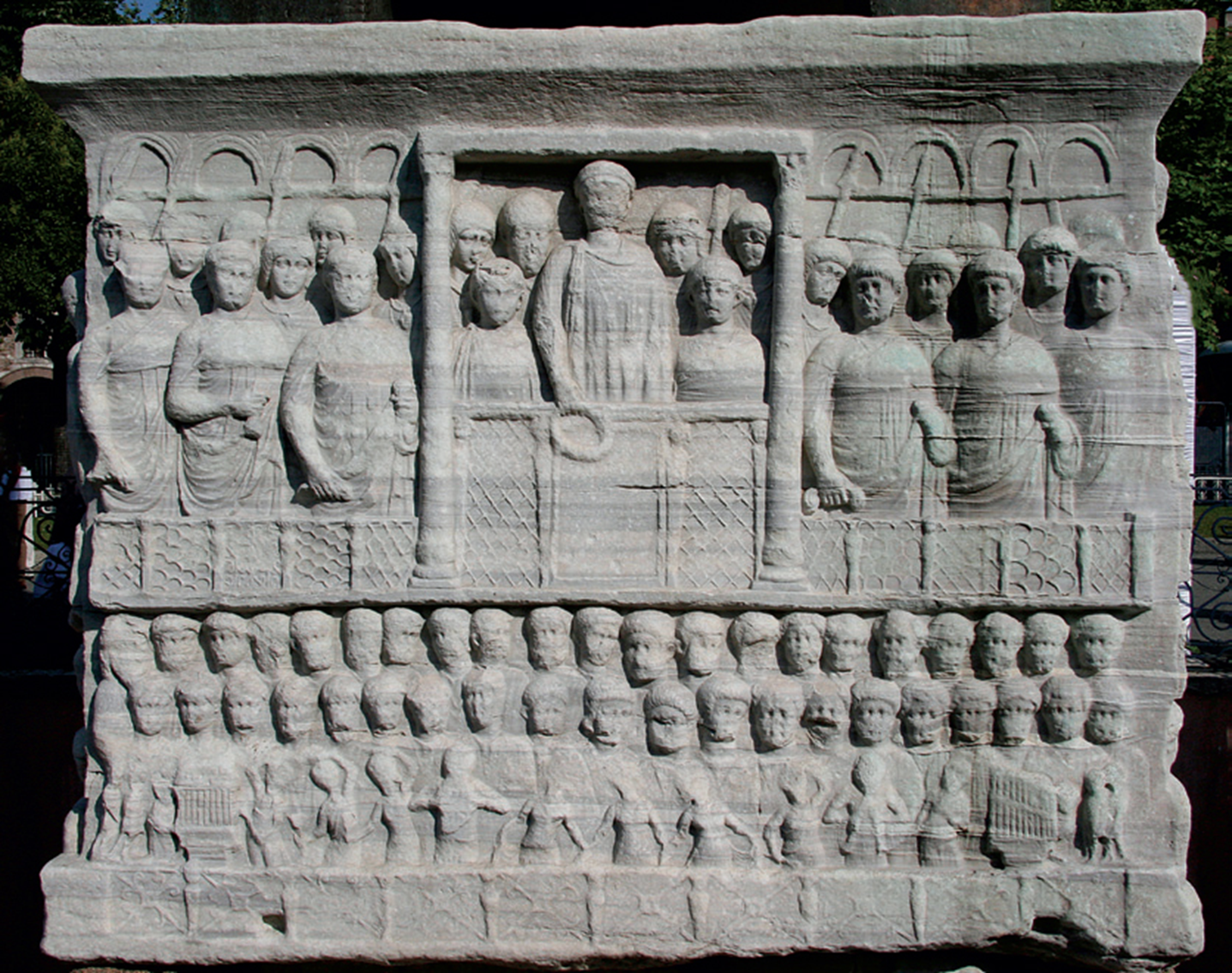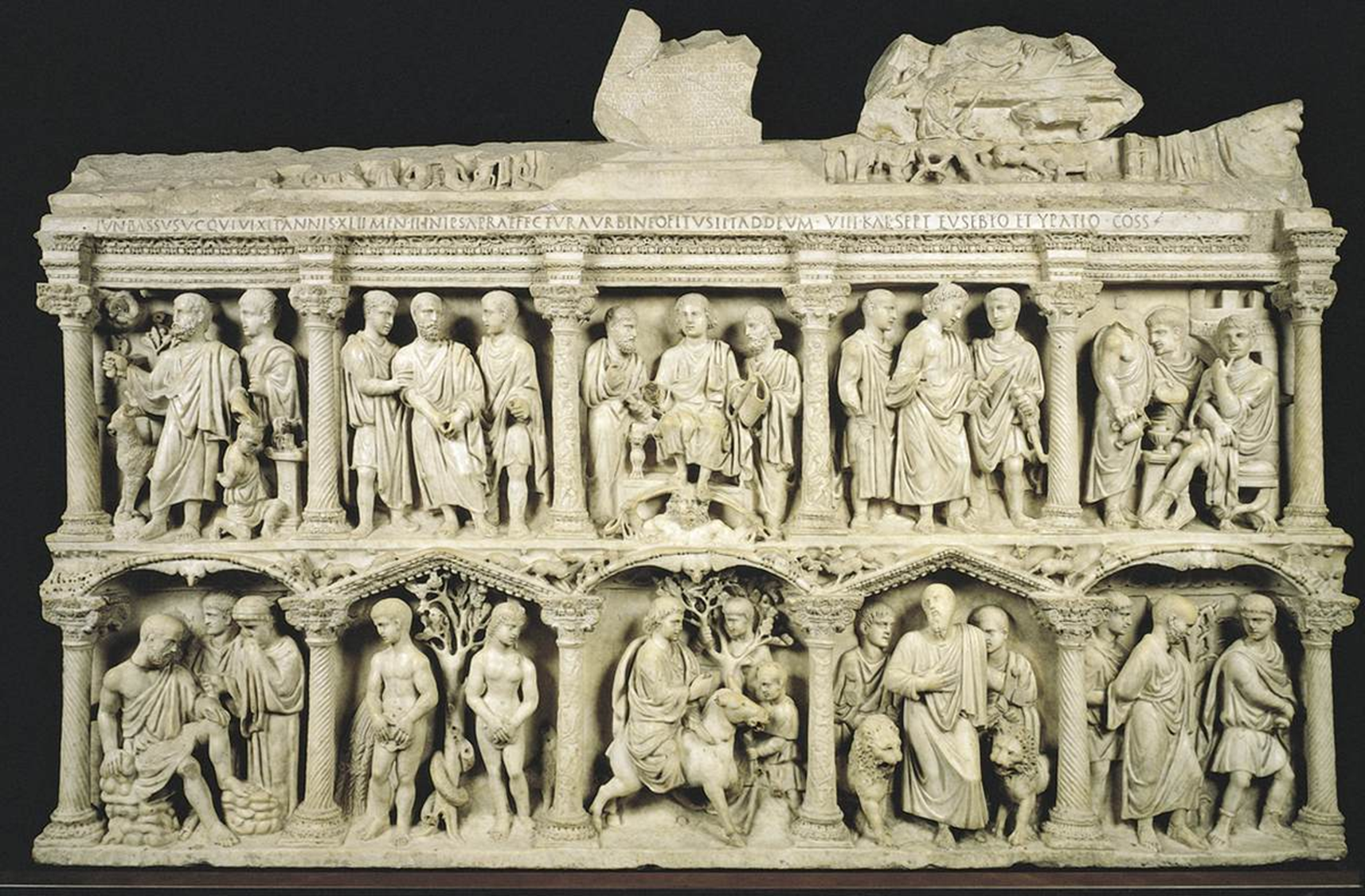 Sarcophagus of Junius Bassus, c. 359, marble, Museo Tresoro, Basilica di San Pietro, Vatican