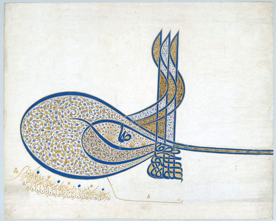 Illuminated tughra of Suleyman the Magnificent, from Constantinople (Istanbul), Turkey, ca. 1555–1560