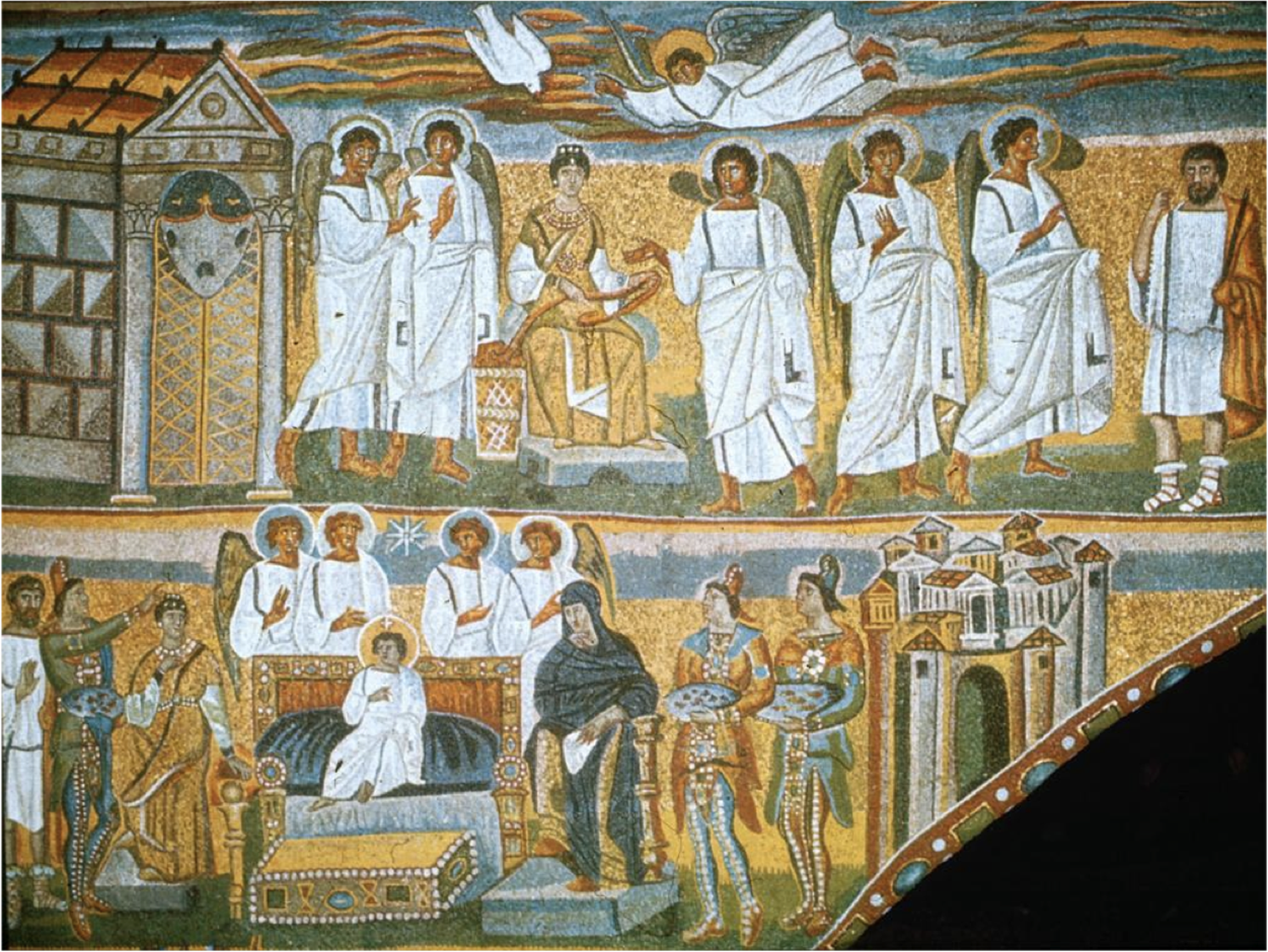Annunciation and Adoration of the Magi, mosaics on chancel arch, Santa Maria Maggiore, Rome, c. 432-440, mosaic