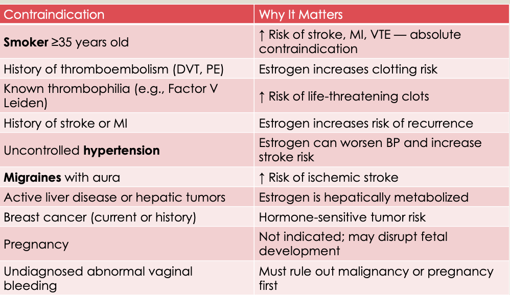 Combined Oral Contraceptive Contraindications