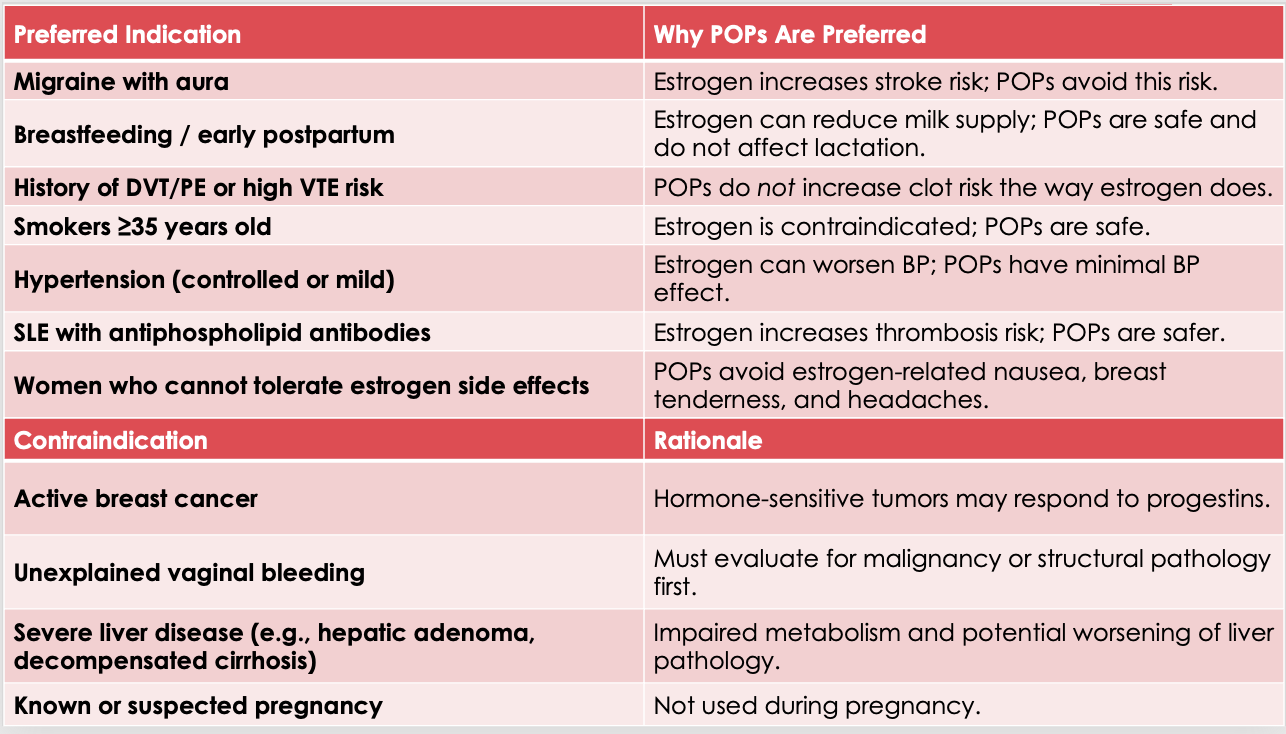 Progestin Only Norethindrone (Camila), Drosperinone (Slynd) Indications