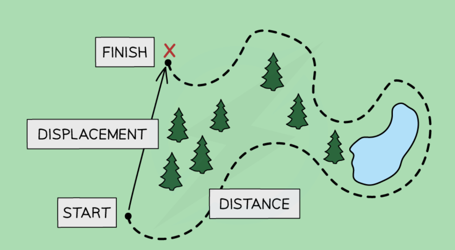 When a student travels to school, will there probably be a difference in the distance they travel and their displacement?