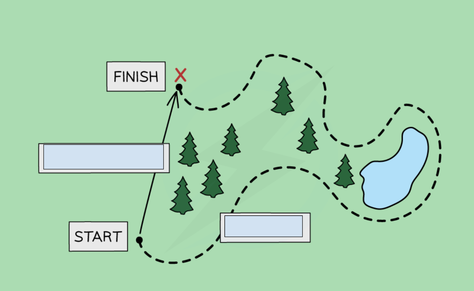 When a student travels to school, does the overall displacement take into account obstacles like buildings, lakes or motorways?