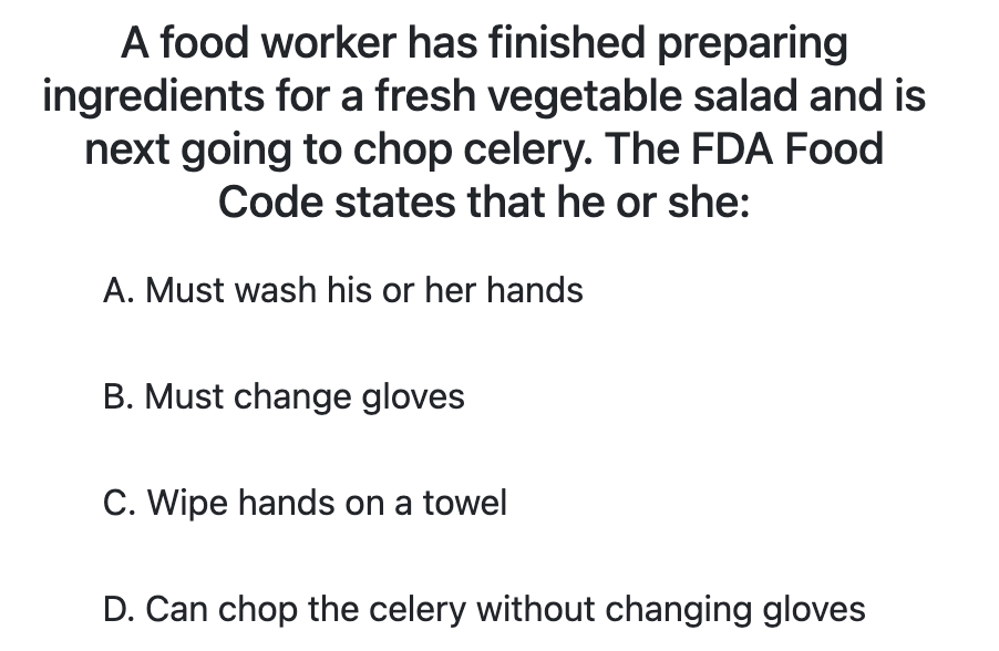 If you are changing tasks from a non-TCS food to another non-TCS food, do you need to change gloves?