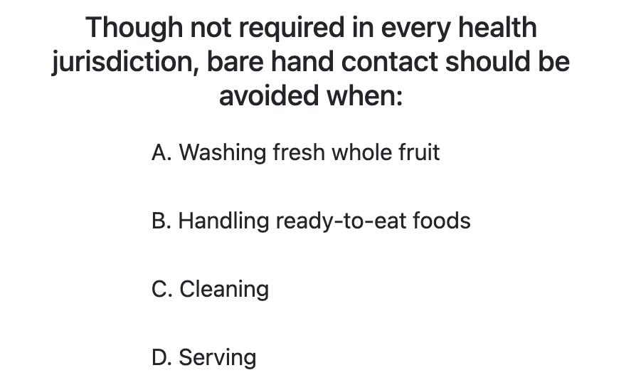 however policies on bare-hand contact with some foods vary in each jurisdiction