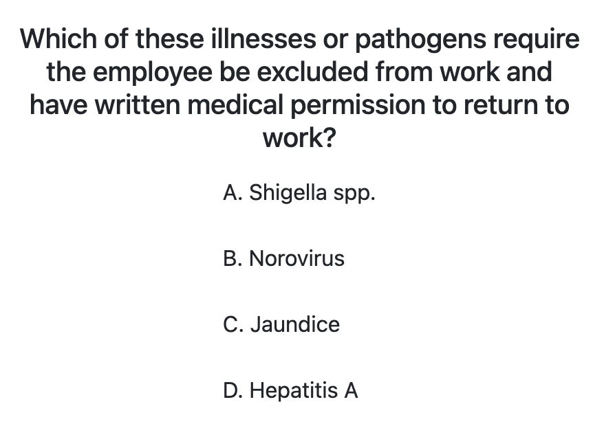 What should a manager do if a worker has an illness caused by the CDC’s “big six”?