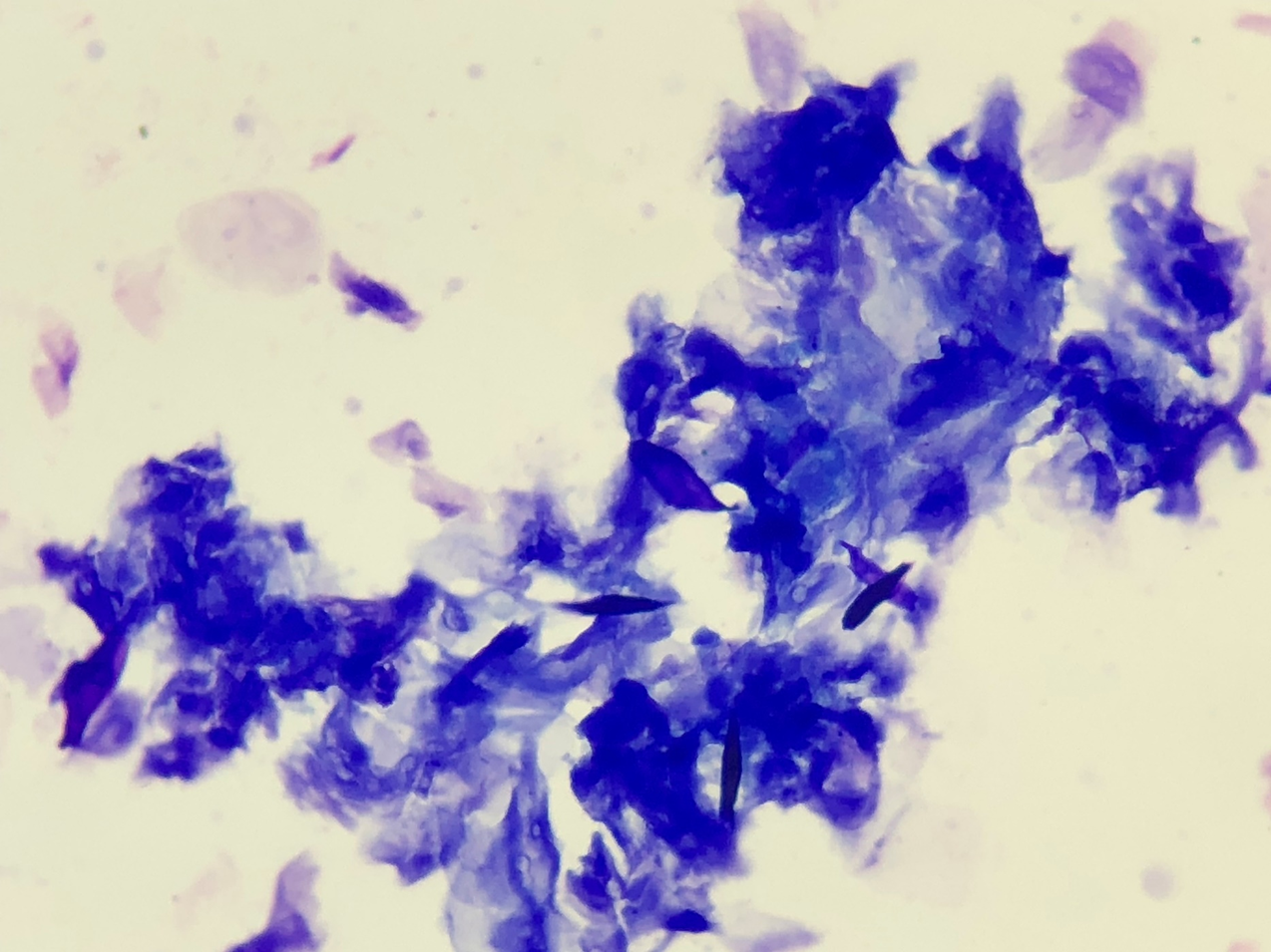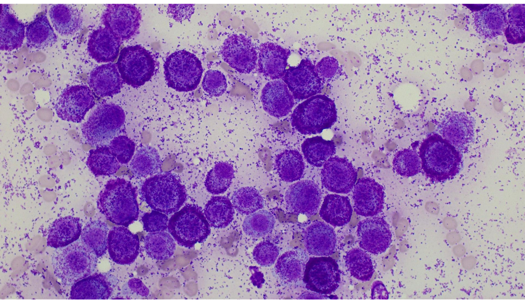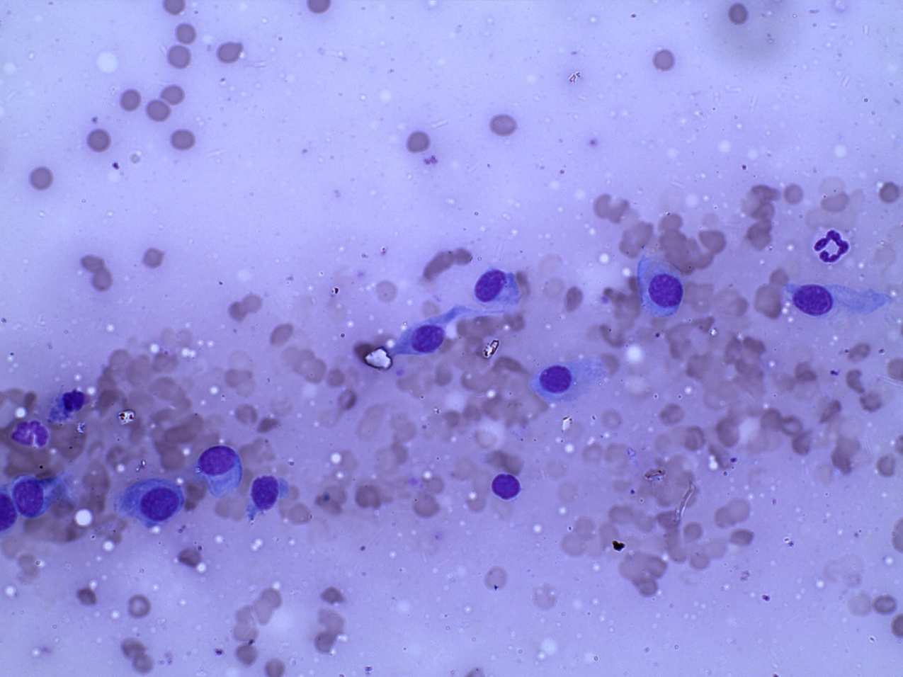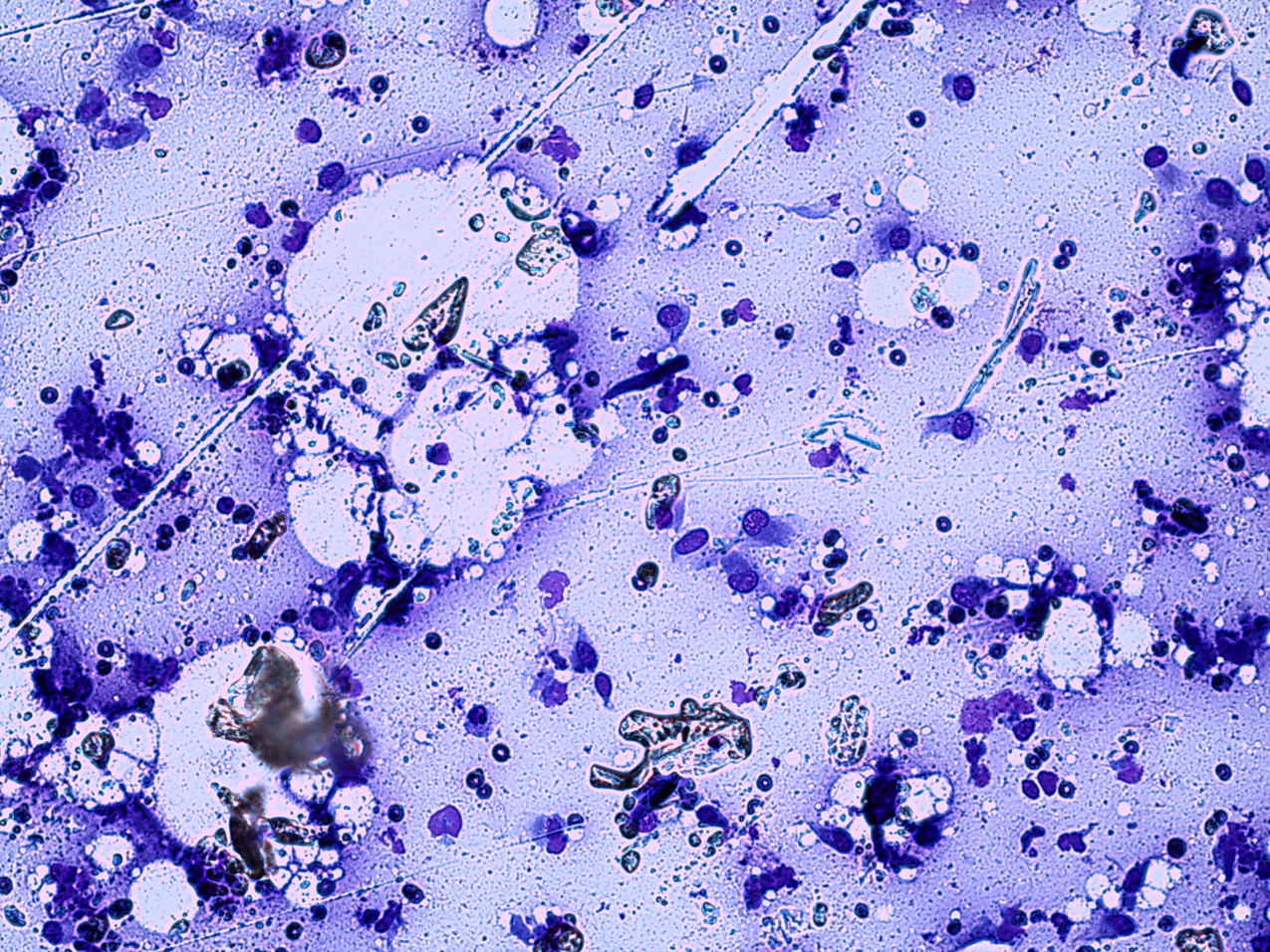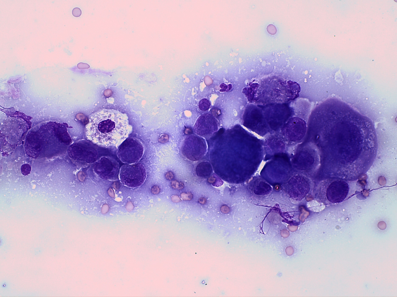 §Think about possible pathologies (e.g., what 4 things cause lymph nodes to enlarge, what 4 things cause prostatic enlargement); which does the cytology best fit with?