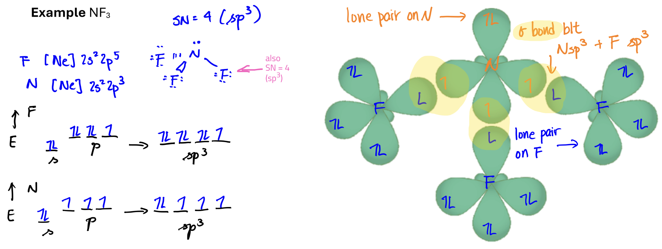 *non-bonding lone pairs are placed in the hybrid orbitals