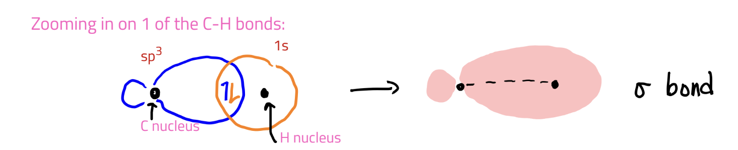 Orbitals overlap end-to-end and electrons are b/w the nuclei