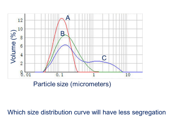 How does particle size influence liquid formulations such as suspensions and emulsions?