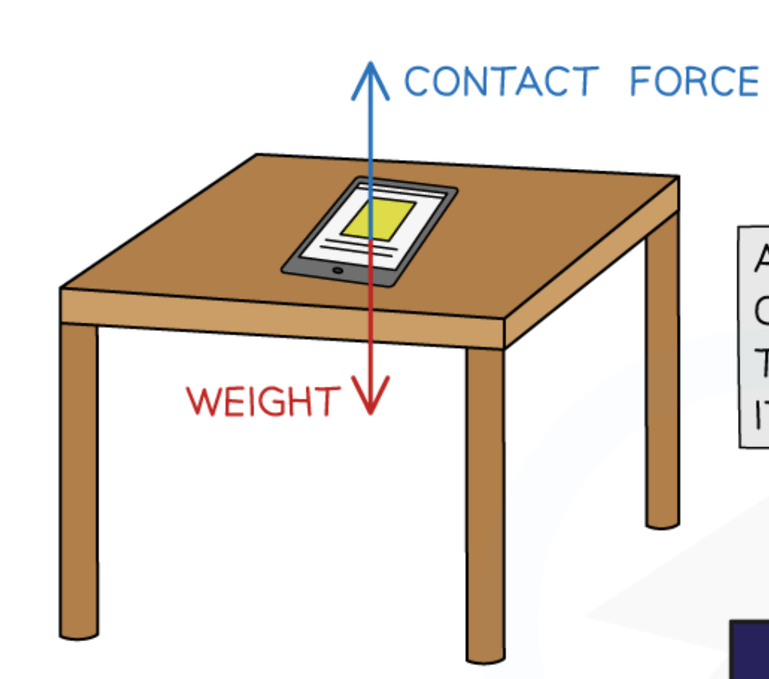 Diagram of forces acting on a tablet on a table: