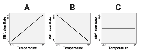 The figure shows three hypothetical relationships between temperature and the rate of diffusion.