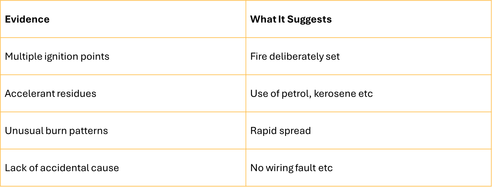 four signs of arson , what is suggest