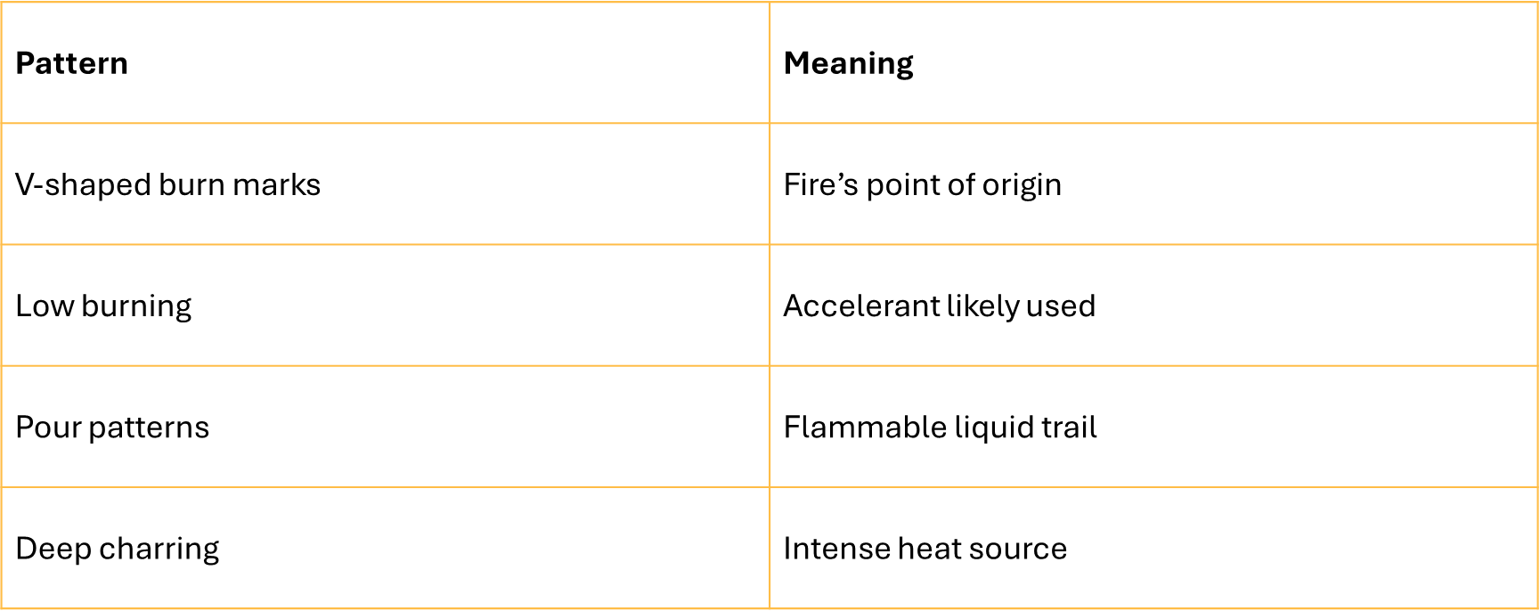 FIre pattern clues