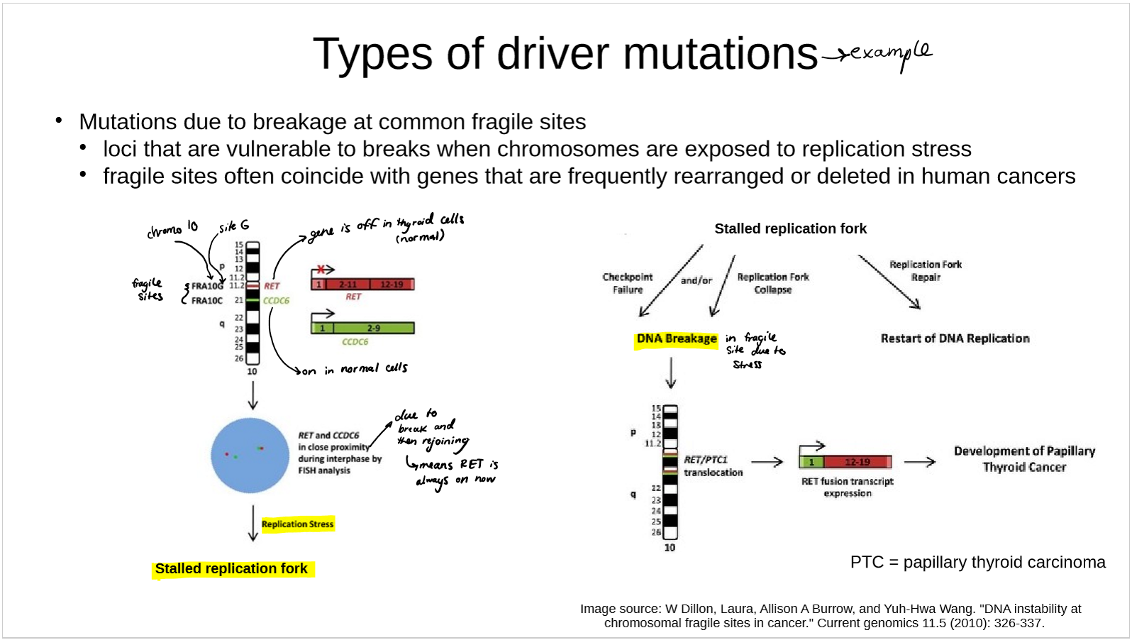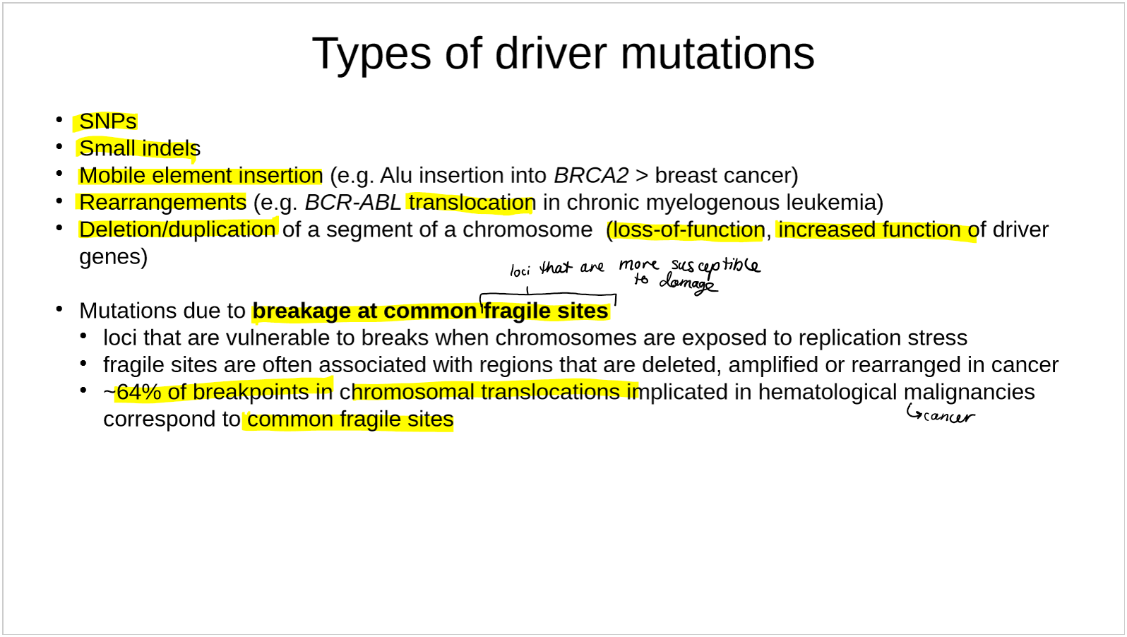 describe how mutations due to breakage at common fragile sites cause cancer
