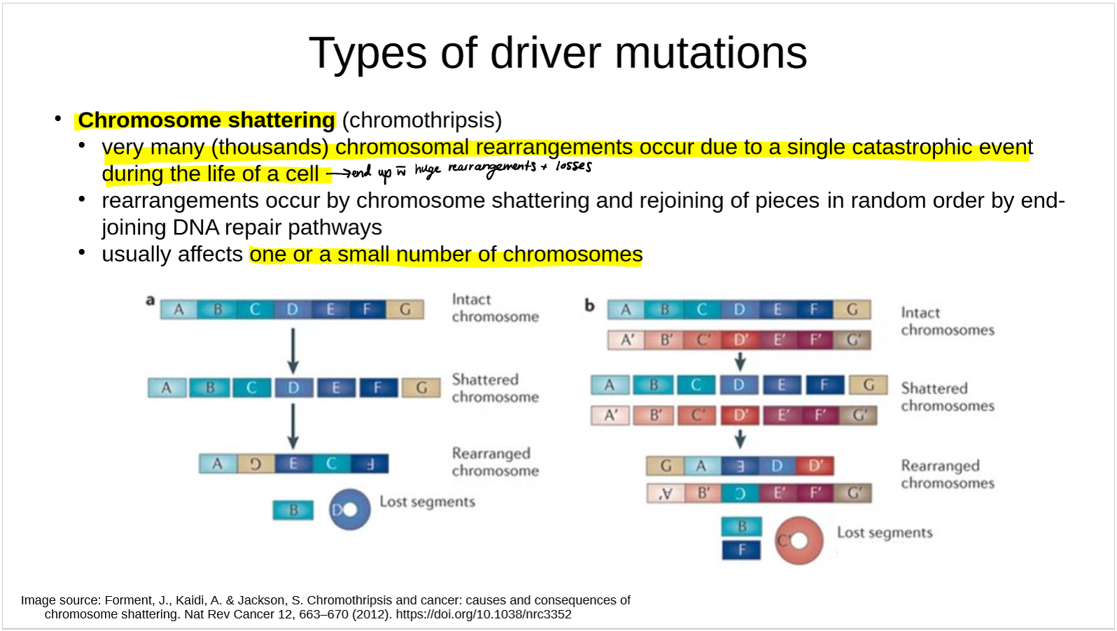 describe how mutations due to chromosome shattering cause cancer