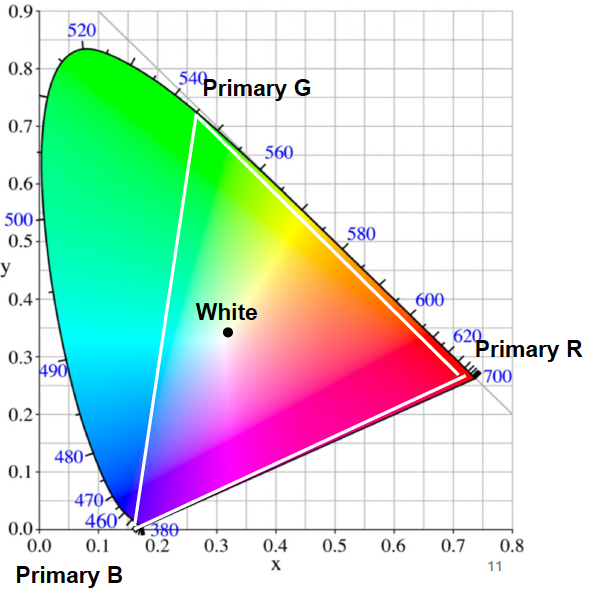 white color is called equal energy white —- cordinates [0.33,0.33]