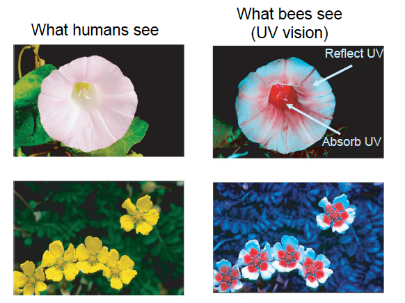other animals can absorb other wavelengths → see wavelengths that humans cannot