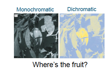 majority of diurnal mammals are dichromats (only 2 cone - reduced colot vision)