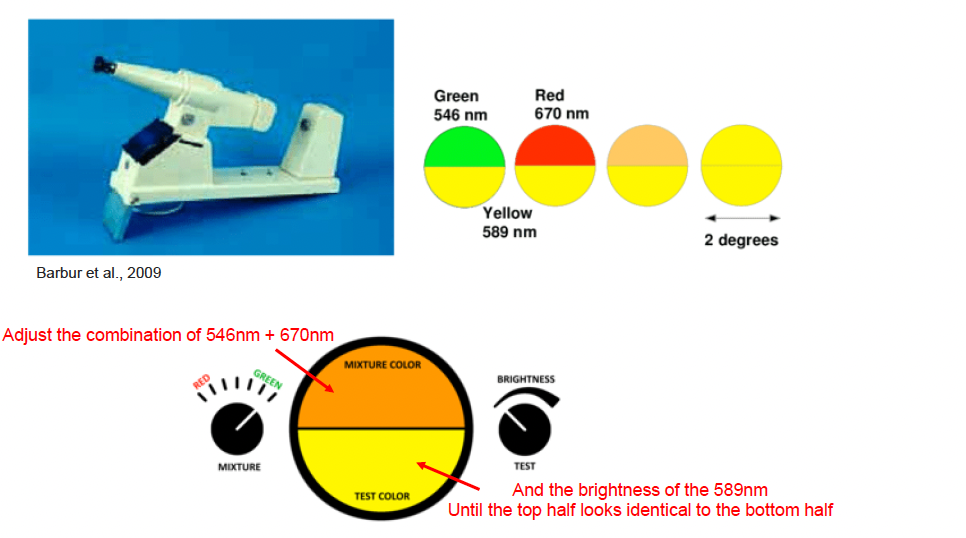 e.g. yellow light bulb vs yellow on the TV vs yellow on print all appear yellow but are caused by very different combinationsofwavelengths