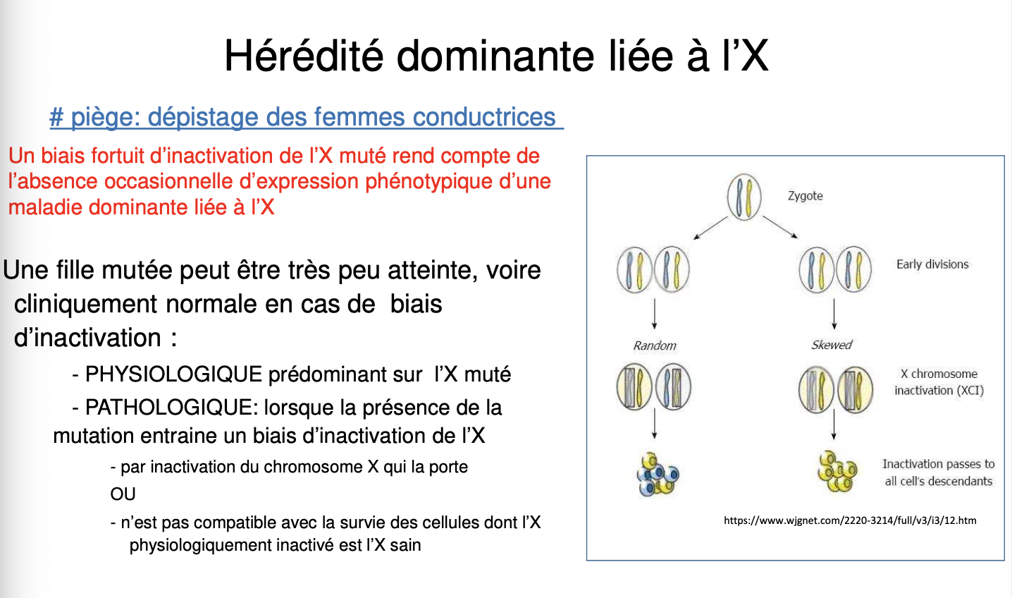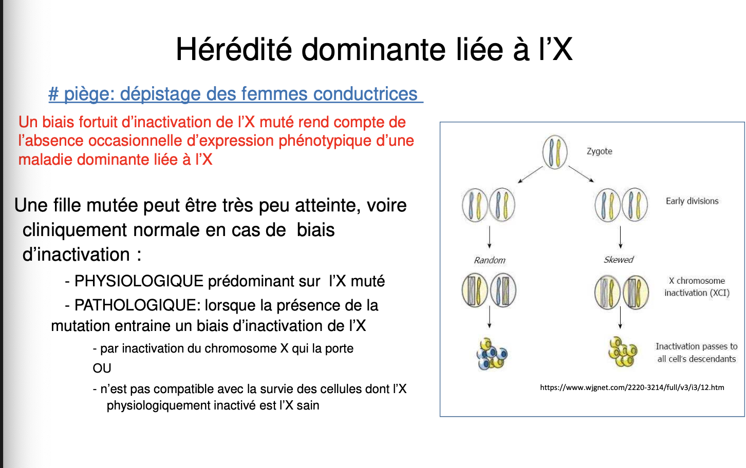 En quoi peut-elle mimer une dominante liée à l’X, et quel point la contredit ?