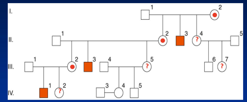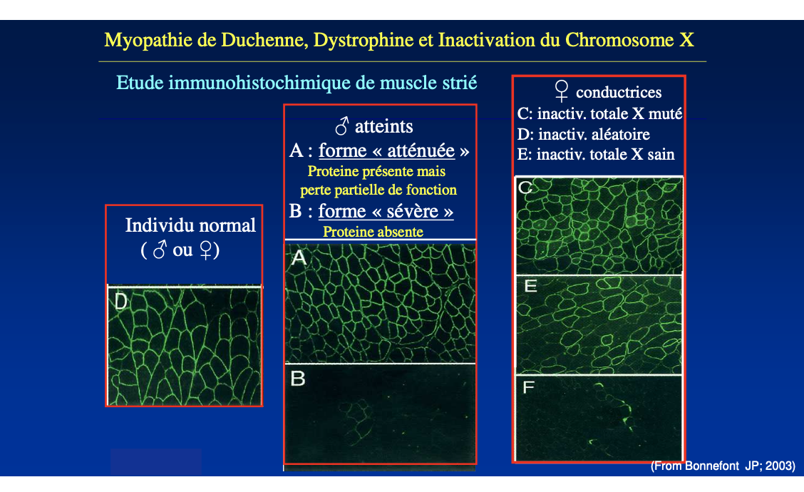 Tous les enfants d’une mère porteuse sont à risque, alors qu’aucun enfant d’un père atteint ne l’est ; la transmission suit la ligne maternelle.