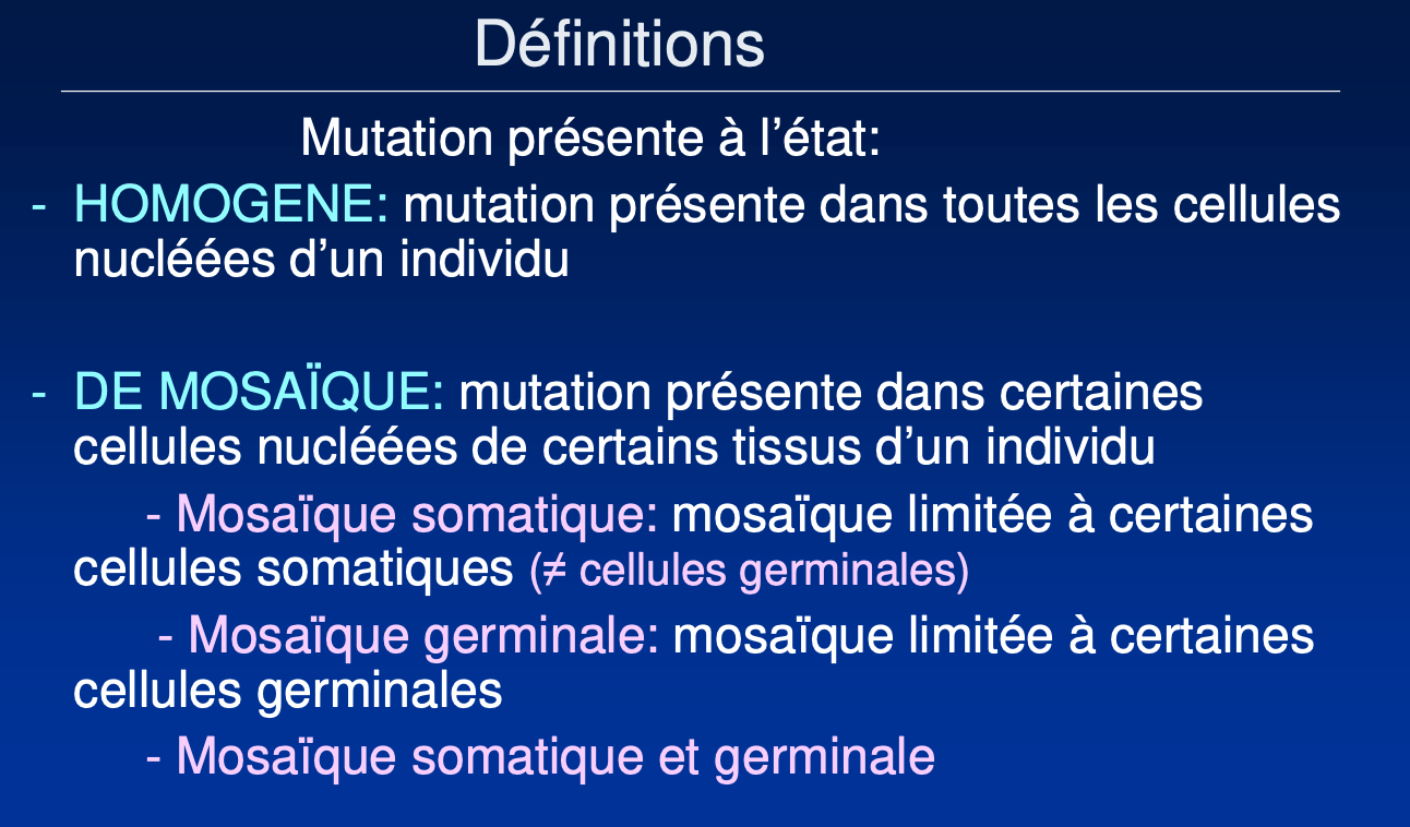 Hétérozygote simple : individu qui possède un allèle sain et un allèle muté.
