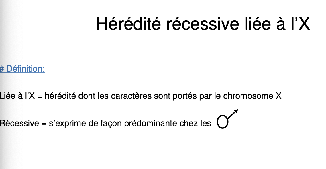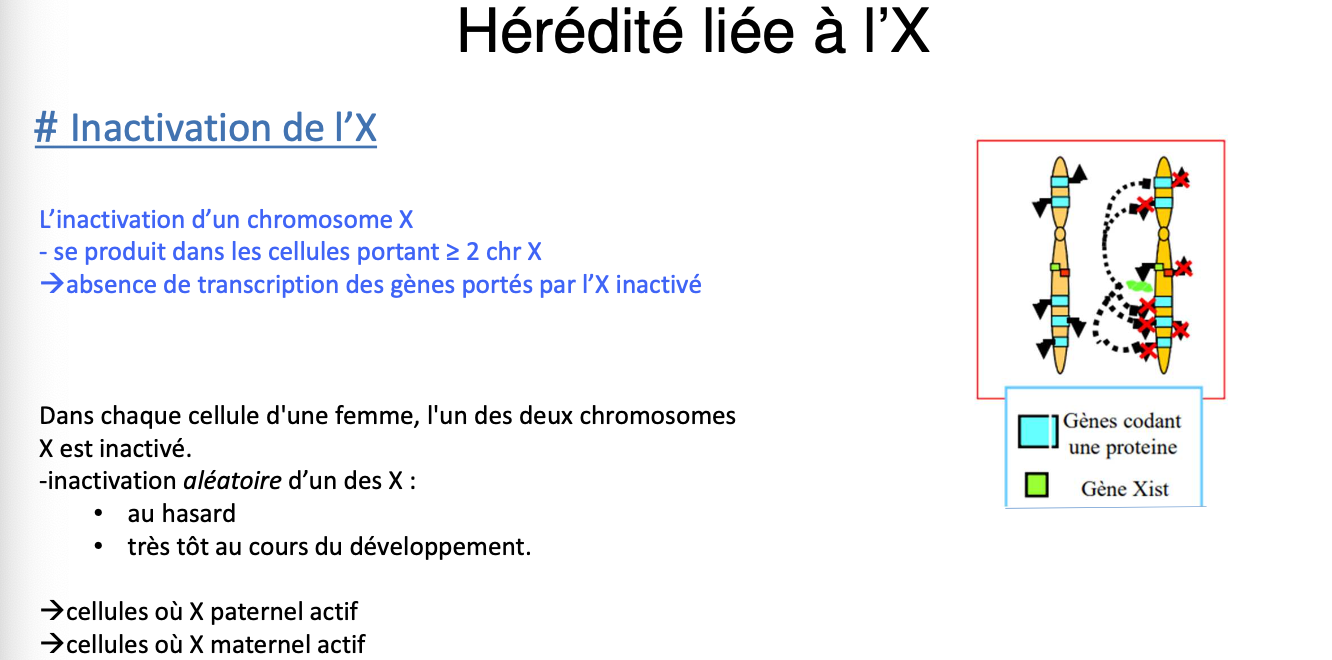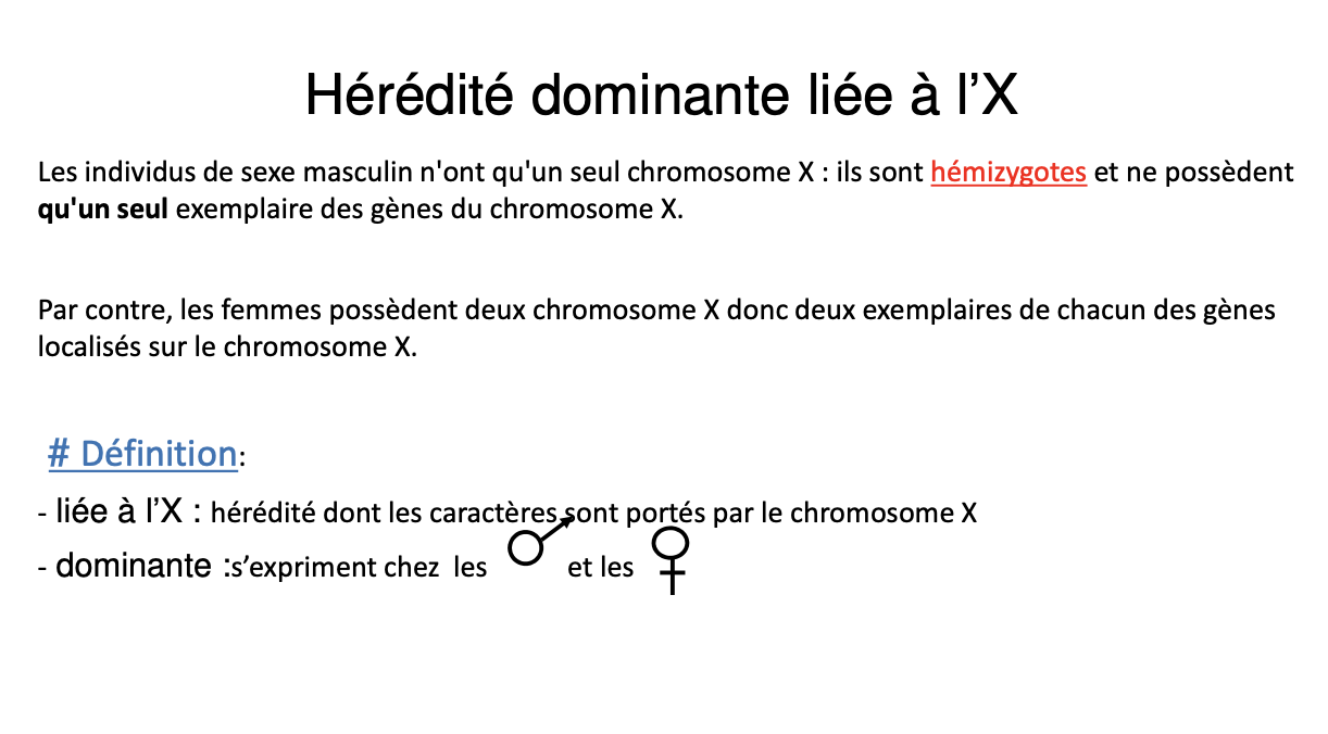 Gonosomes → 2 allèles si fille (XX), 1 seul si garçon (XY).