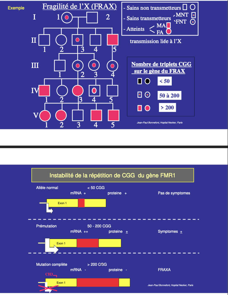 Mimique récessive liée à l’X mais : sex-ratio des atteints ≈ 1:1.