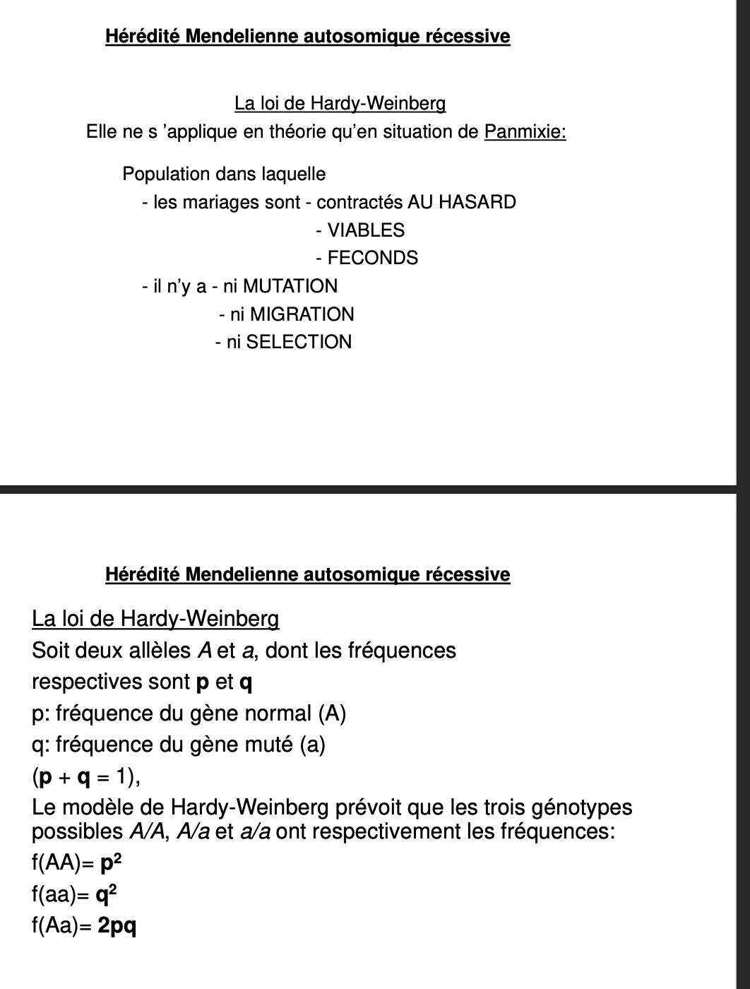 Hérédité mendélienne – Autosomique récessive (AR) + pseudodominance & Hardy–Weinberg