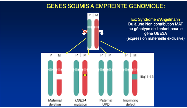 Syndrome d’Angelman (UBE3A, expression maternelle dans le cerveau) : perte de contribution maternelle par