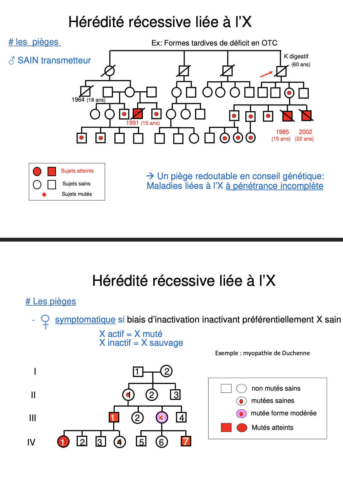 En quoi peut-elle mimer une récessive liée à l’X, et quel point la contredit ?