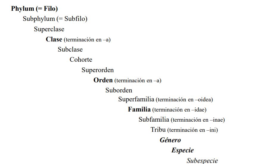 Clasificación jerárquica inclusiva: Categorías taxonómicas.