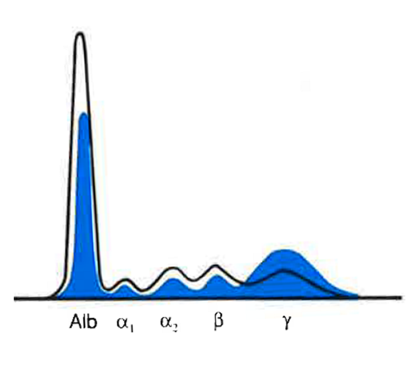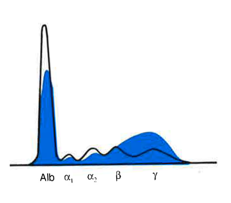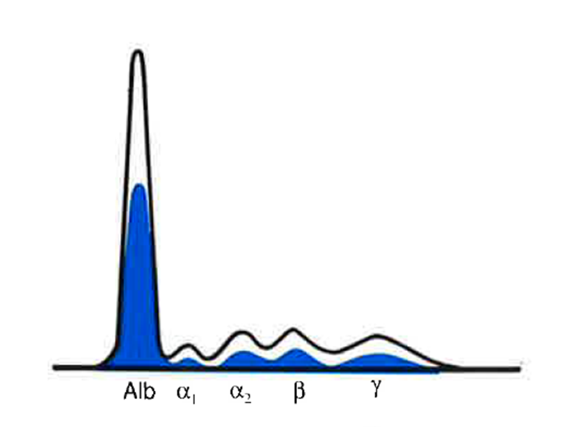 TP decreased, Albumin decreased and Alpha 1, Alpha 2, Beta, Gamma all decreased