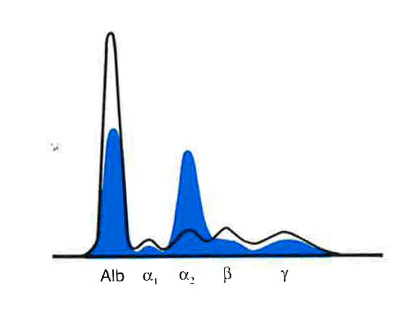 Albumin and Alpha 1 decreased, Alpha 2 increased