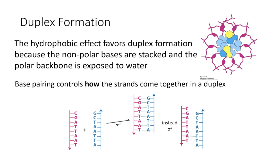 hydrophobic effect favors duplex formation