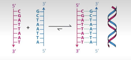Base pairing controls how the strands come together in a duplex